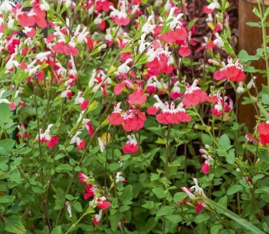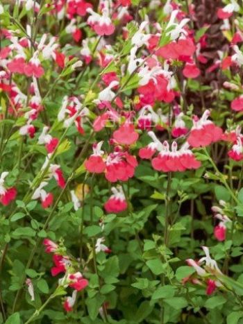 Salvia greggii 'Hotlips' è una perenne sempreverde, portamento ordinato, steli eretti ama il terreno ricco, fresco, ben drenato, zone miti come esposizione preferisce Sole il fiore è rosso e bianco appartiene alla famiglia delle Lamiaceae il suo periodo di fioritura è Giugno - Ottobre raggiunge un'altezza massima di 70 cm - 80 cm